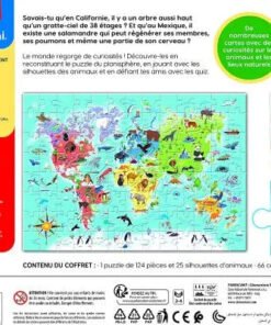 Ce puzzle éducatif est idéal pour les jeunes explorateurs. Il encourage la réflexion, la culture générale et l’amour de la nature. Commandez dès maintenant et transformez chaque séance de jeu en une aventure éducative inoubliable !