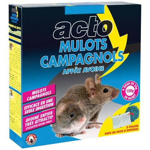 ACTO Appât céréales – mulots- campagnols – 150 g – 6 sachets de 25 g