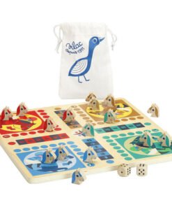Il contient deux jeux classiques : le jeu de l’oie et le jeu de petits chevaux, parfaits pour des moments conviviaux en famille ou entre amis.