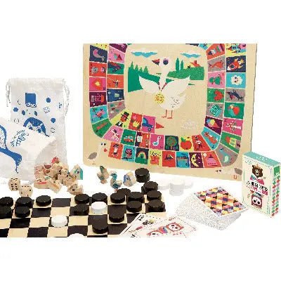 Plongez dans l’univers intemporel du Coffret de jeux en bois pour enfants, illustré par Ingela P. Arrhenius. Ce coffret combine charme rétro et divertissement éducatif. Les enfants dès 4 ans peuvent découvrir des heures de jeu stimulantes grâce aux plateaux de jeu réversibles, au jeu de 52 cartes et au livret de règles inclus. Ainsi, chaque partie devient une expérience ludique et enrichissante.