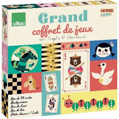 Ce coffret réunit cinq jeux classiques incontournables : le backgammon, le jeu de l’oie, le jeu de petits chevaux, le jeu de dames et le jeu de cartes. Chaque jeu développe des compétences essentielles. Par exemple, le backgammon et le jeu de dames renforcent la réflexion stratégique. Le jeu de l’oie et les petits chevaux favorisent la concentration et la patience. De plus, jouer en famille ou entre amis encourage la collaboration et les échanges. Ainsi, le coffret allie amusement et apprentissage.