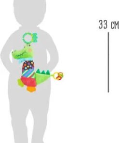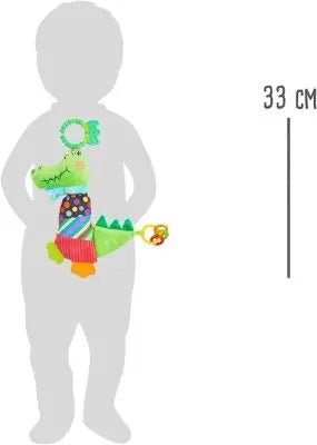 Fabriqué avec des matériaux de haute qualité, le hochet éducatif crocodile reste léger et parfaitement sûr. Vous pouvez facilement l’installer dans un landau, un parc ou une aire de jeu. Ses dimensions pratiques de 30 x 3,5 x 33 cm permettent à votre enfant de le manipuler sans difficulté. De plus, sa queue crépitante ajoute une sensation tactile supplémentaire qui rend le jeu encore plus captivant.